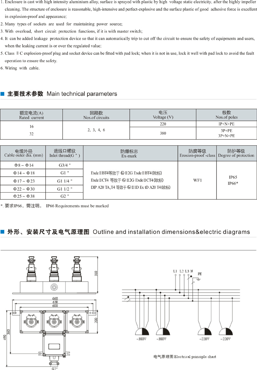 防爆照明(動(dòng)力)配電箱—有多種規(guī)格的插座便于檢修用電源;